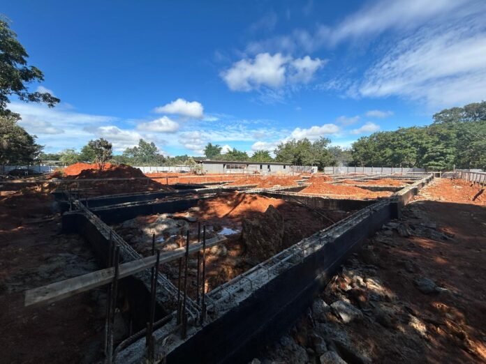 Entre os próximos serviços a serem executados está o reaterro das valas dos blocos e vigas, o aterro e compactação para execução de laje de piso, as instalações hidrossanitárias, a execução de laje de piso em concreto armado e os a colocação dos pilares e vigas em aço.