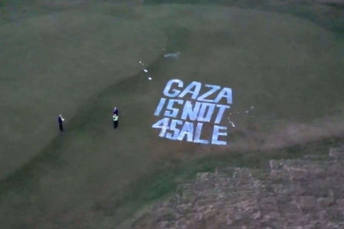 Um grupo de ativistas pró-Palestina, identificado como Ação Palestina, vandalizou um dos campos de golfe do presidente dos Estados Unidos, Donald Trump, localizado em Turnberry, na Escócia. A ação foi registrada e compartilhada pelo grupo nas redes sociais neste domingo (8/3).