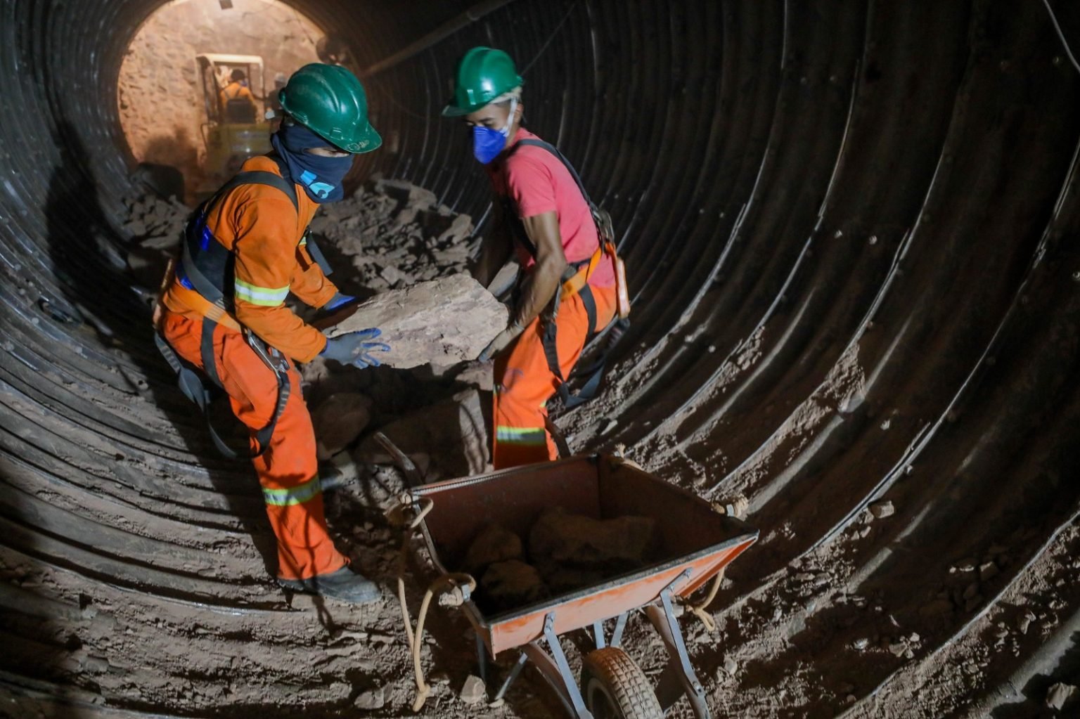 As ações incluem a injeção de solo-cimento, uma técnica que proporciona mais estabilidade e resistência à construção, além da limpeza do túnel, com a retirada de terra e equipamentos da área, a aplicação de malhas de aço e, por fim, a execução do concreto projetado, que vai revestir a estrutura.