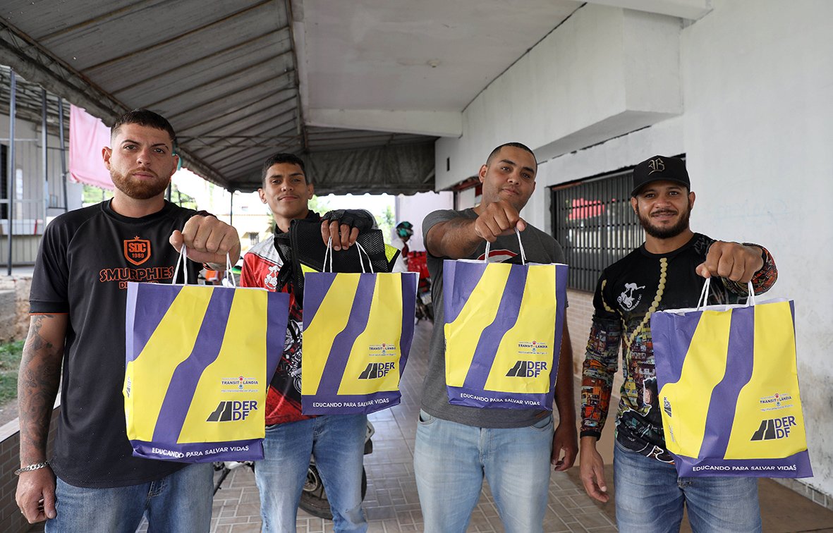 A primeira parada foi em Sobradinho. Ainda nesta semana, o DER deve promover a iniciativa no Plano Piloto. “Essa ação é voltada aos motofretistas, que são os entregadores de aplicativo, porque eles passam muito tempo em cima da moto e a gente verificou que é o pessoal que mais sofre sinistros de trânsito. Para tentar evitar isso, a gente está distribuindo alguns EPIs, como o colete refletivo e a antena que corta linha de pipa, para a segurança deles”, explicou o agente de trânsito Gustavo Estevam.