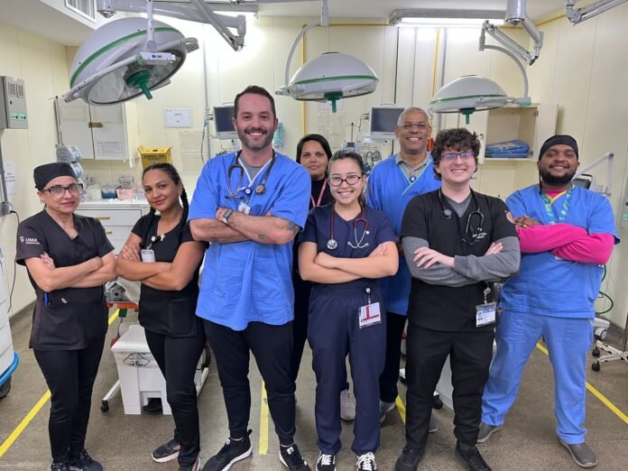 Um dos emergencistas da equipe é Paulo Guilherme Santos, de 36 anos, que integra o time desde janeiro. Ele escolheu a especialidade pelo dinamismo e pela necessidade constante de decisões rápidas e procedimentos urgentes. “Atendemos todos os tipos de emergência – traumas, casos ortopédicos, obstétricos e pediátricos –, mas o foco principal é a clínica médica”, relata.