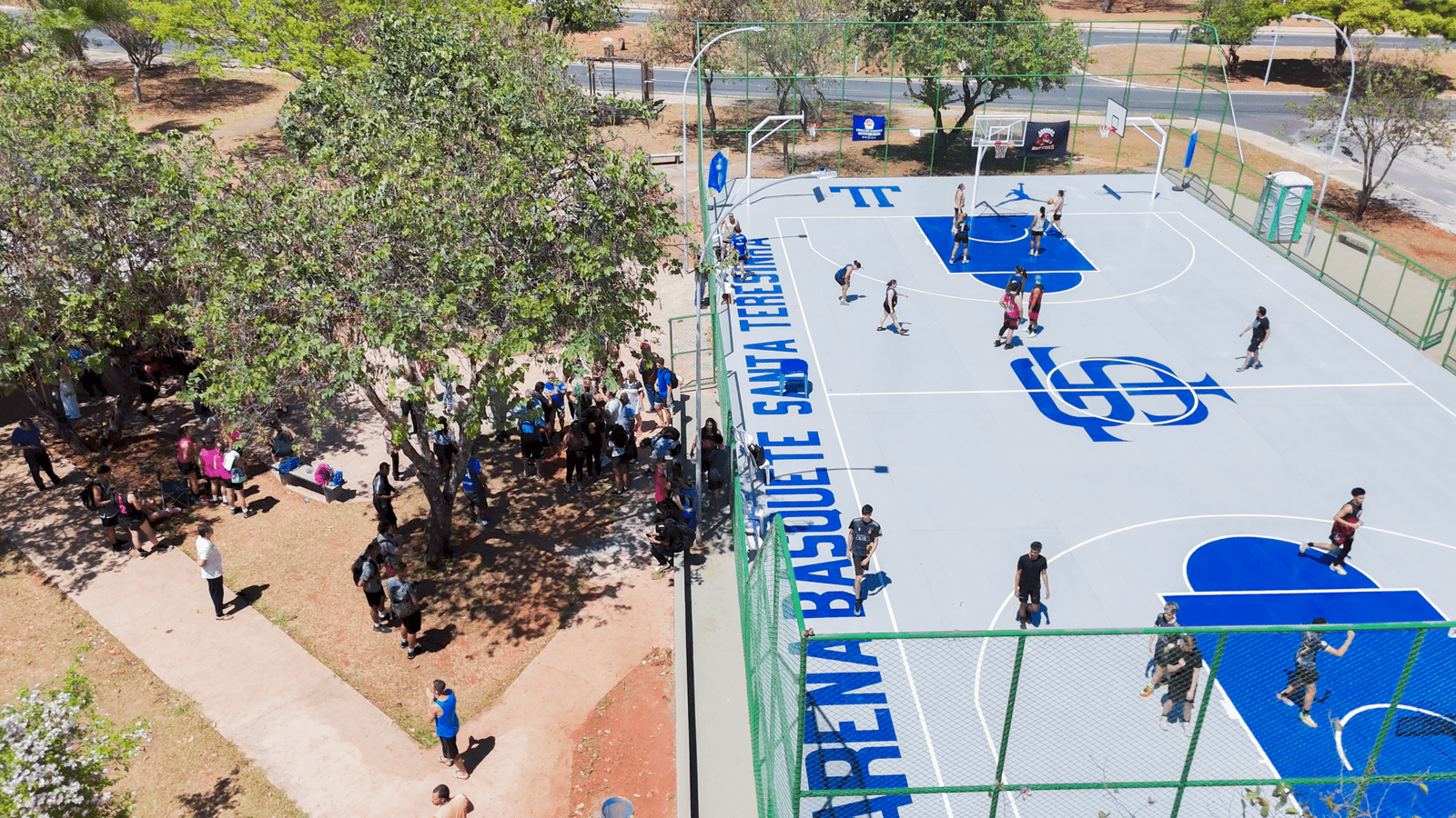 A Praça da Paróquia Santa Terezinha, no Cruzeiro Novo, foi palco de emoção e integração comunitária no sábado (27). A reinauguração da Arena Santa Terezinha reuniu moradores, atletas e lideranças locais em um evento marcado por esporte, lazer e confraternização. A programação contou com torneio de basquete 3×3 nas categorias infantil, feminino e masculino, além de atrações culturais e de entretenimento, como exposição de carros antigos, food trucks e brinquedos para as crianças.
